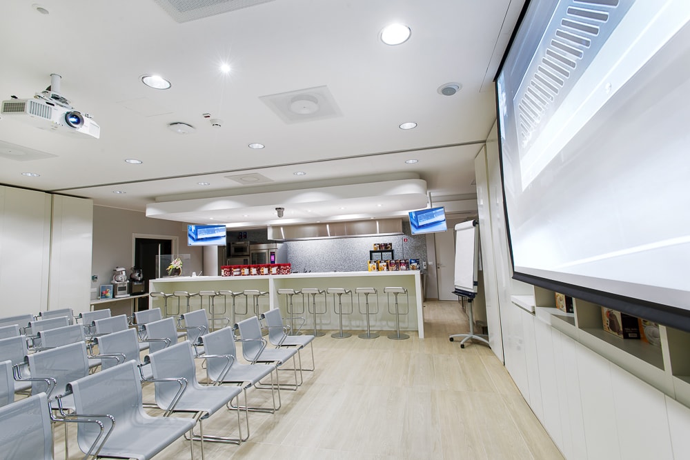 - Sala Auditorium Professional, per la realizzazione di dimostrazioni pratiche inerenti la scuola di cucina, da trasmettere in streaming-live o da registrare per una pubblicazione successiva